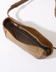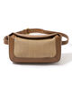 本体にフェード感あるラフィア調素材、付属類にボックスカーフ調皮革を使用し、前胴・背胴部分にスポンジを使用した丸みのあるモダンなウェストバッグ。