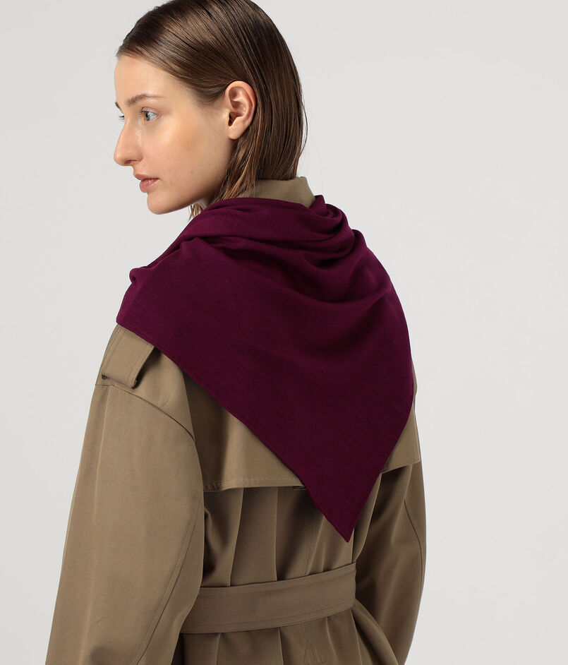 大判の三角巾のようなシルエットが印象的なスカーフ。