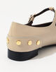 ポイントであしらわれたかかとのスタッズとTストラップがどんなテイストのスタイルにも馴染み、スカートからのぞくと良いアクセントに。どんな日でもスタイリングに輝きを与えてくれ、タイムレスに履き続けられる一足です。