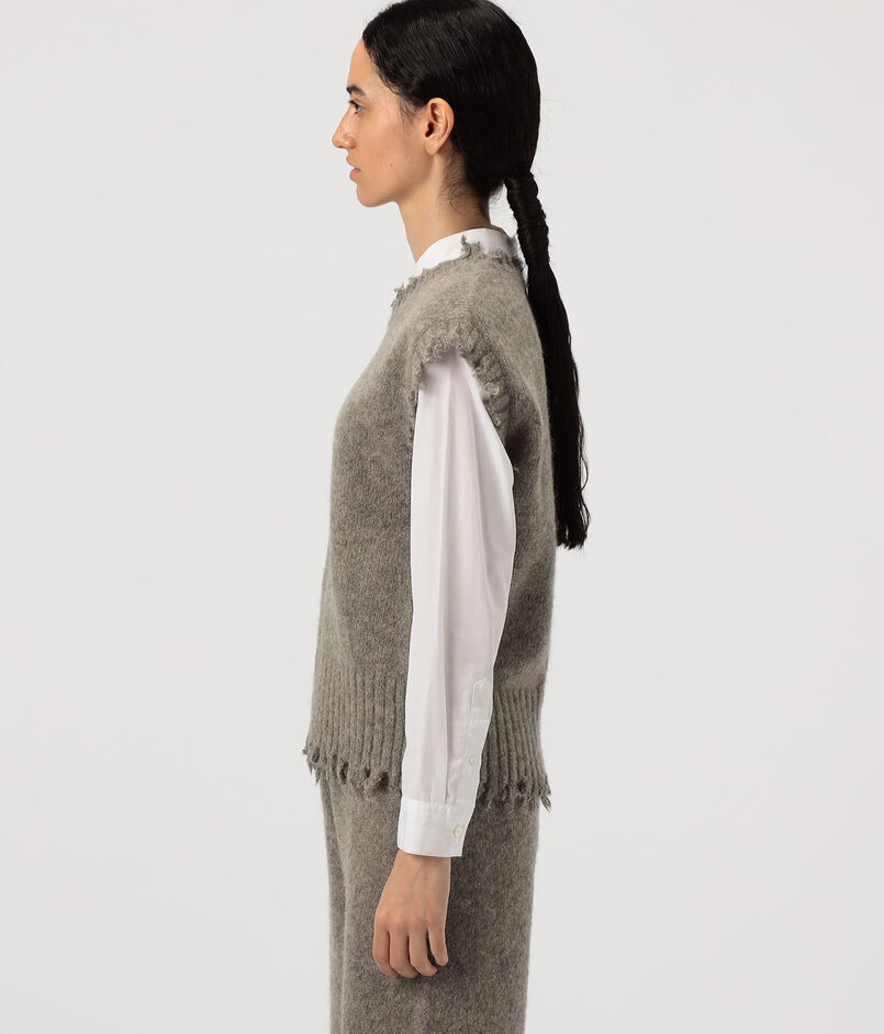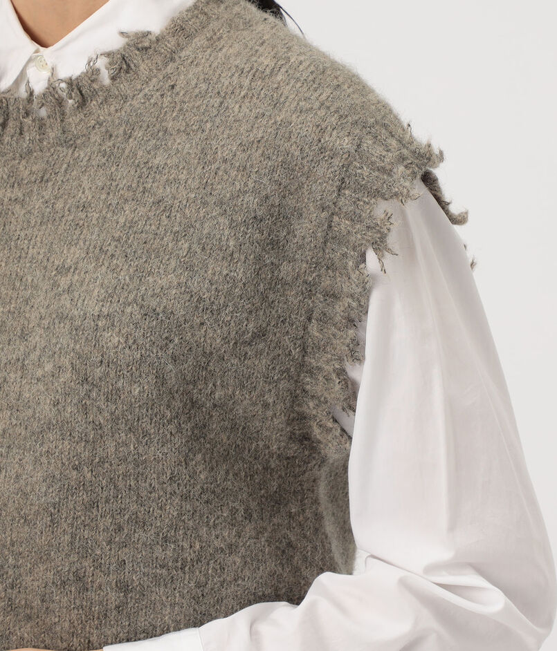 ランダムに切り込みを入れたようなディテールがポイントのベスト。