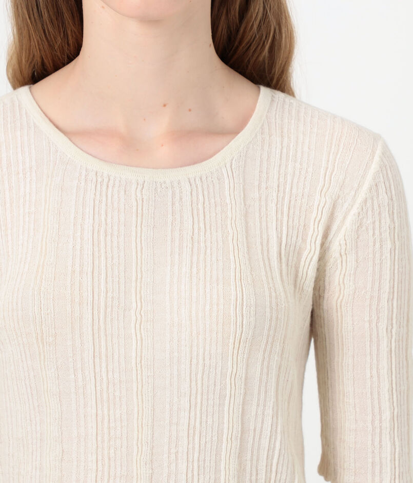 天然素材を使用し、ペルーニット独特の柔らかい表情と贅沢に糸を使用したしっかりとした密度のある編みが魅力。