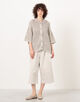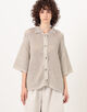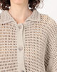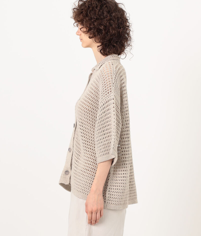 コットンリネン糸で編み上げた、ハンドニットのシャツカーディガン。