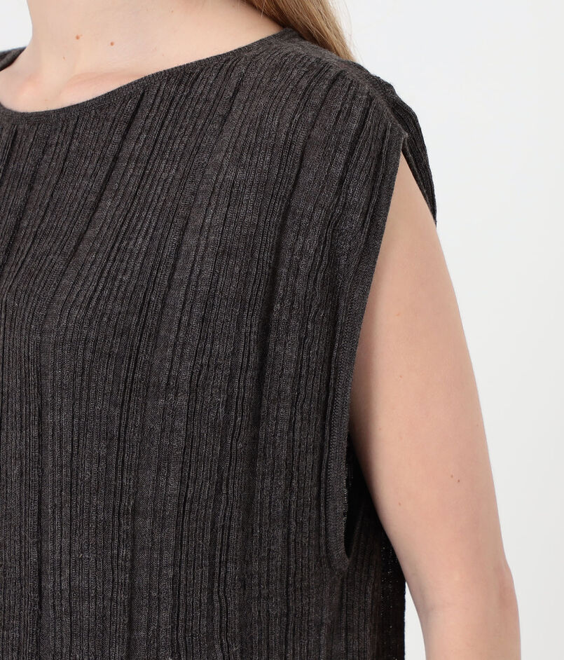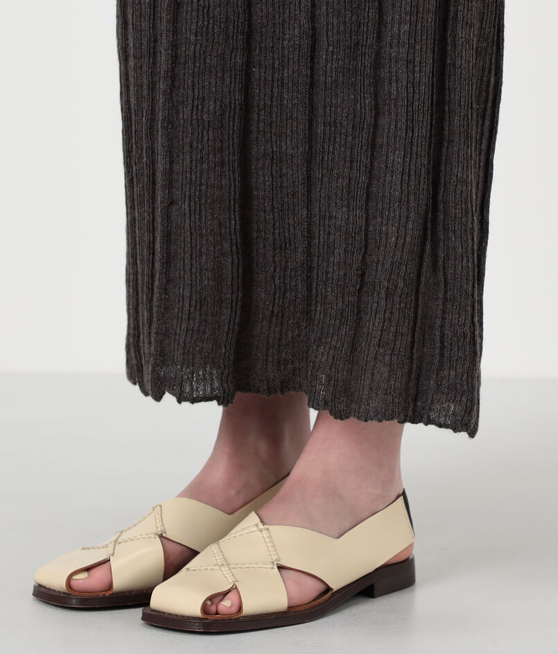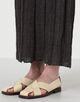 細かいプリーツがさらさらと揺れ、女性らしい印象に。