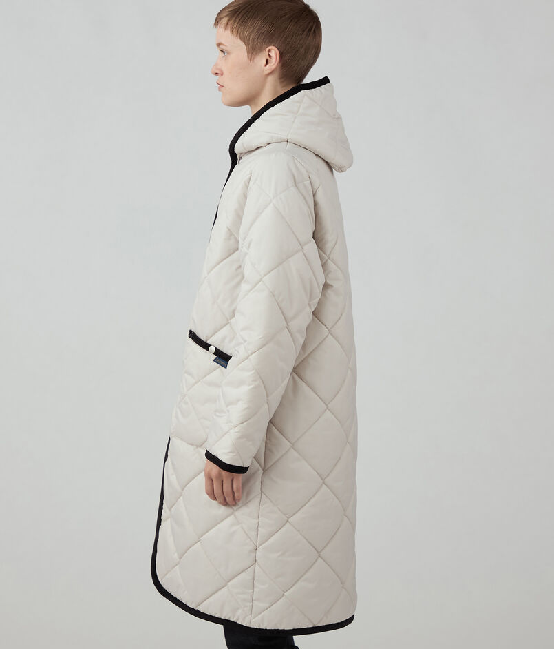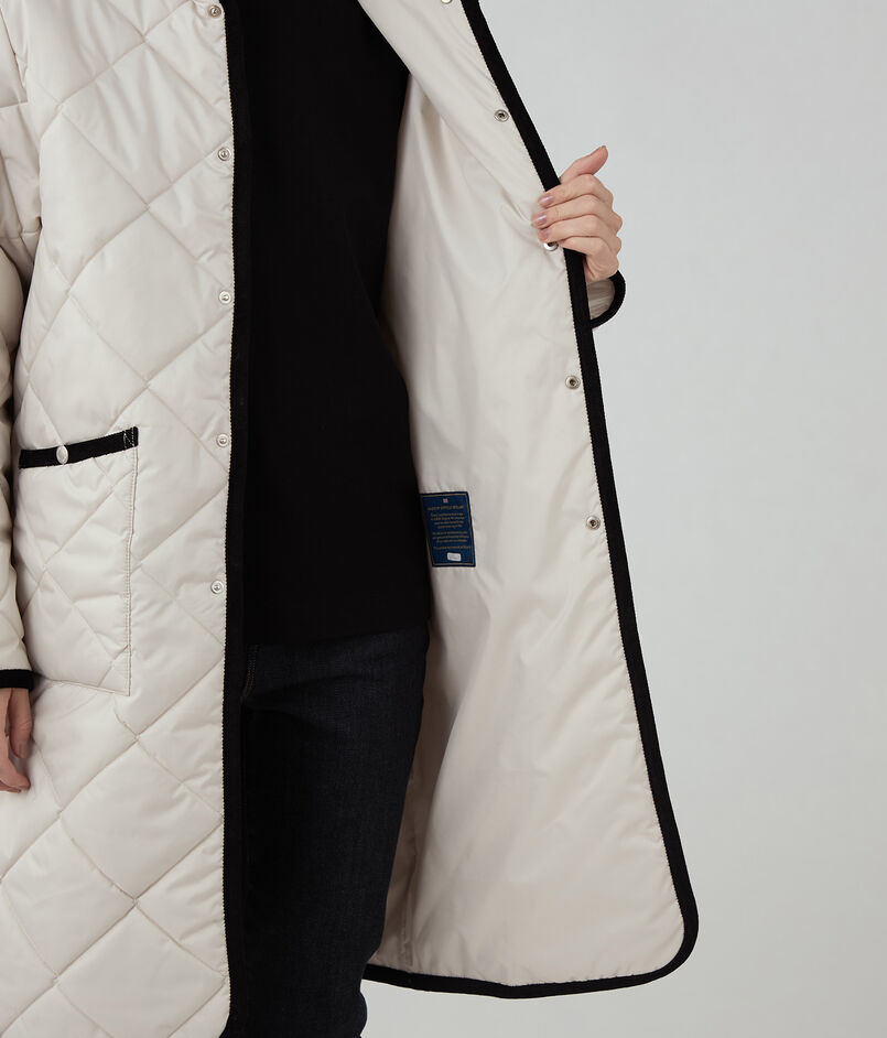 キルティングには定番の2インチダイアモンド柄より大きい4インチのダイアモンド柄を使用しており、より柔らかさが感じられる素材感になっています。
