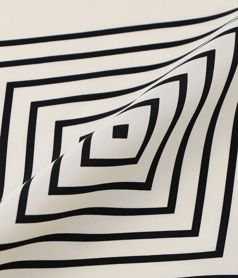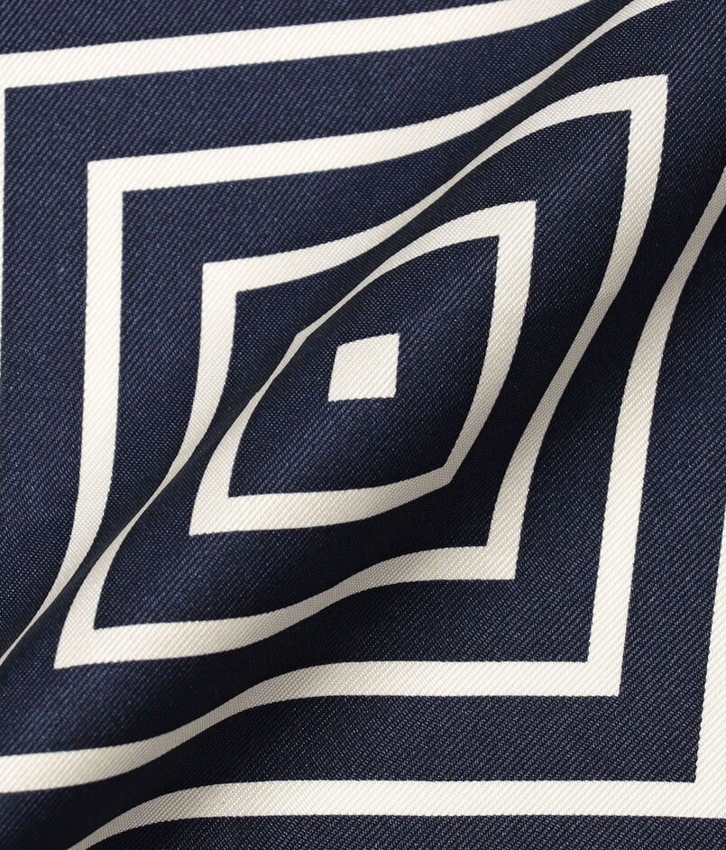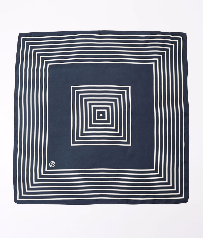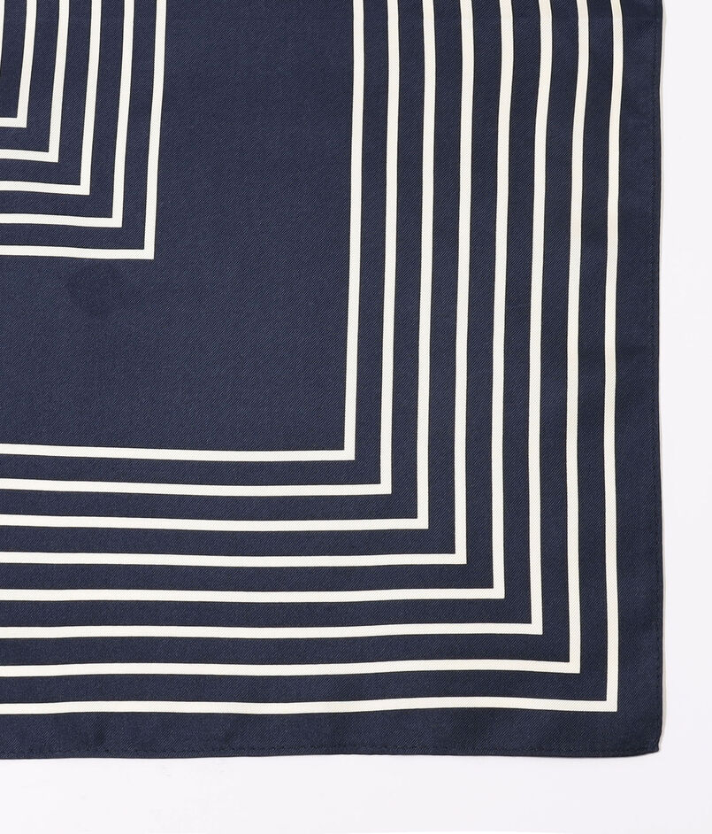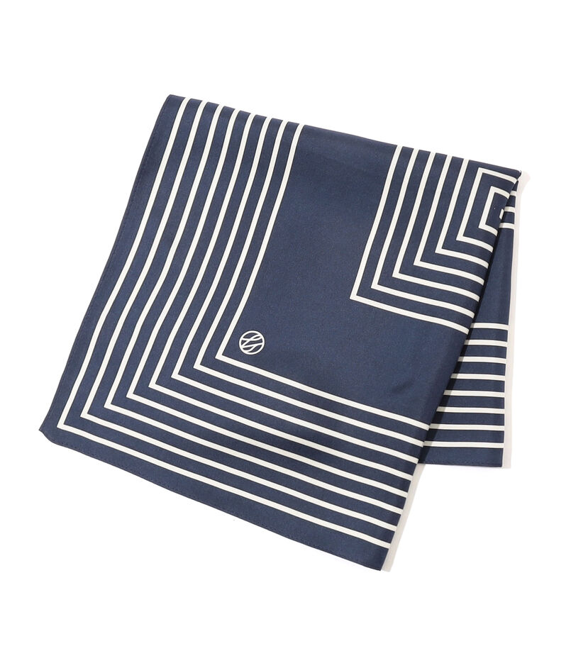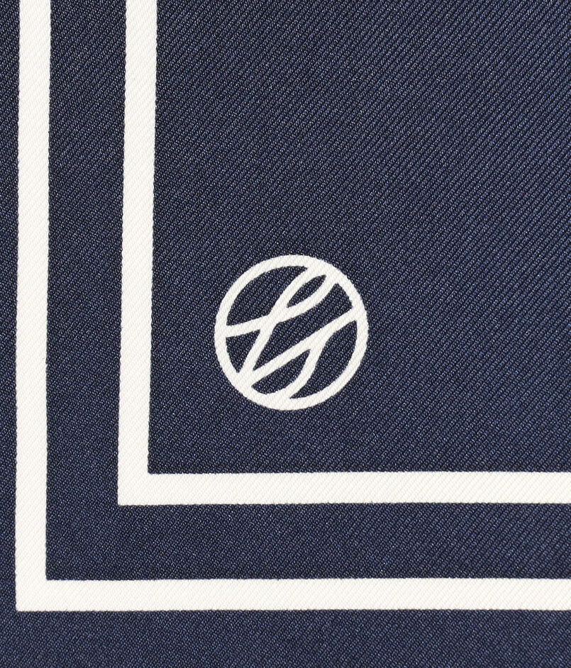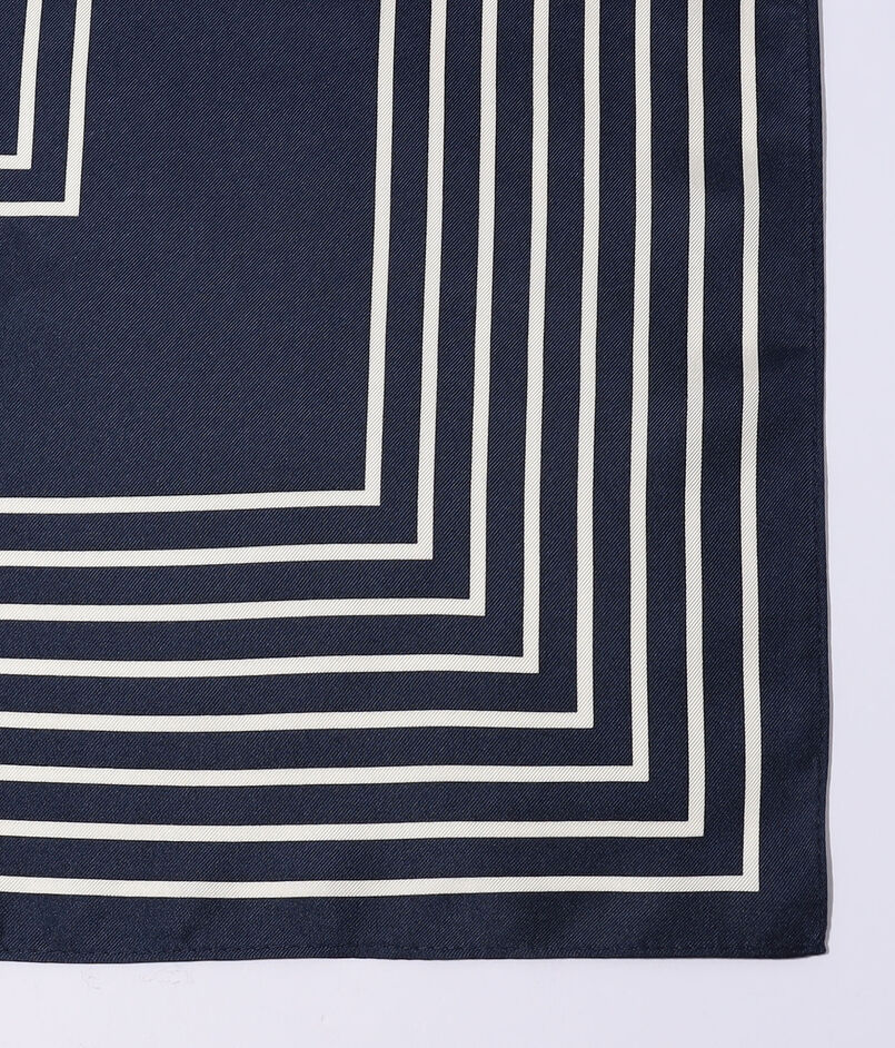 シンプルなラインのデザインがシックな印象を与えてくれるシルクスカーフ。