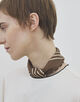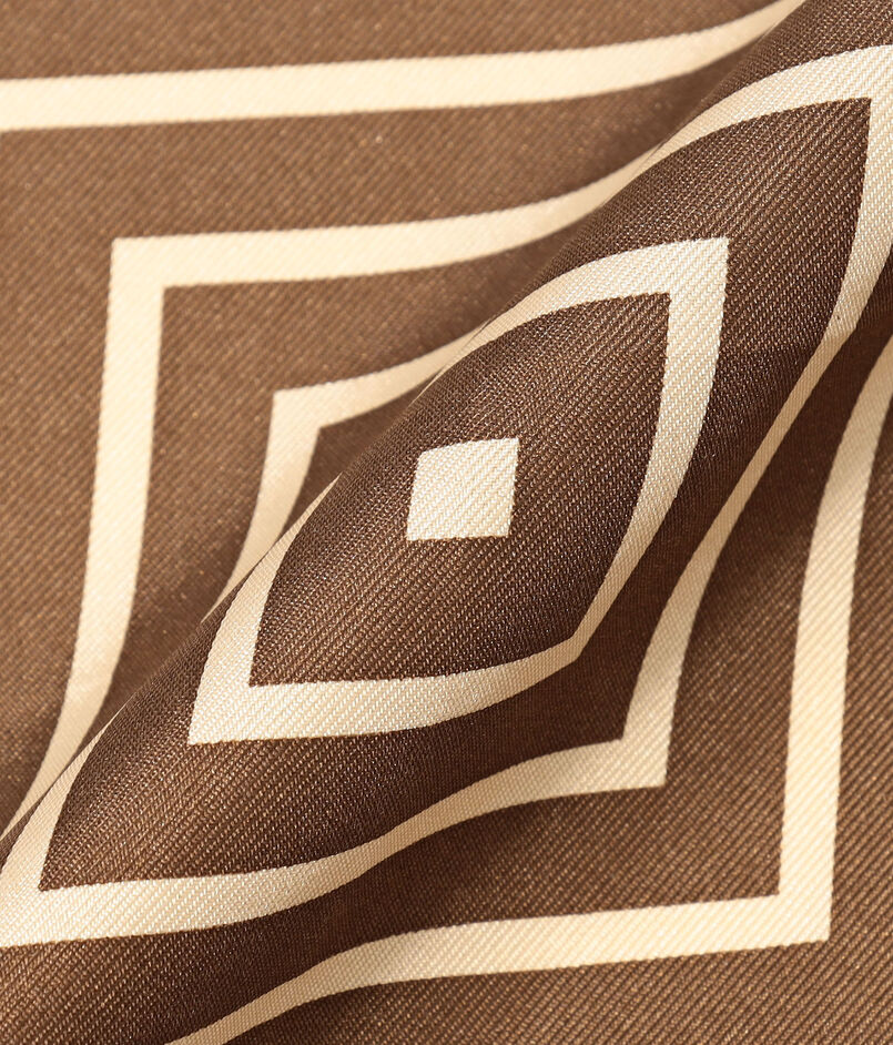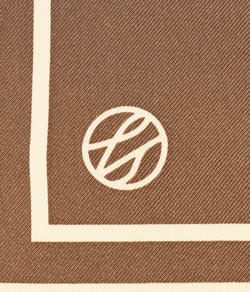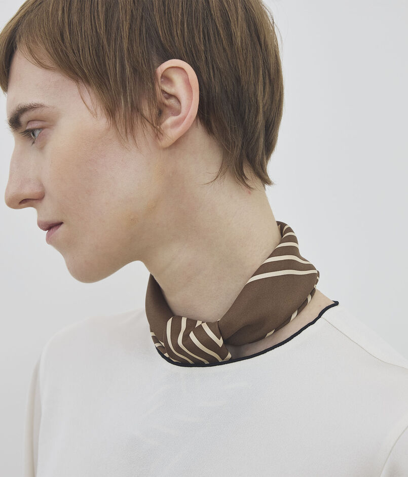 シックなブラウンにシャープなストライプが目を引くスカーフ。