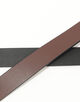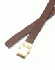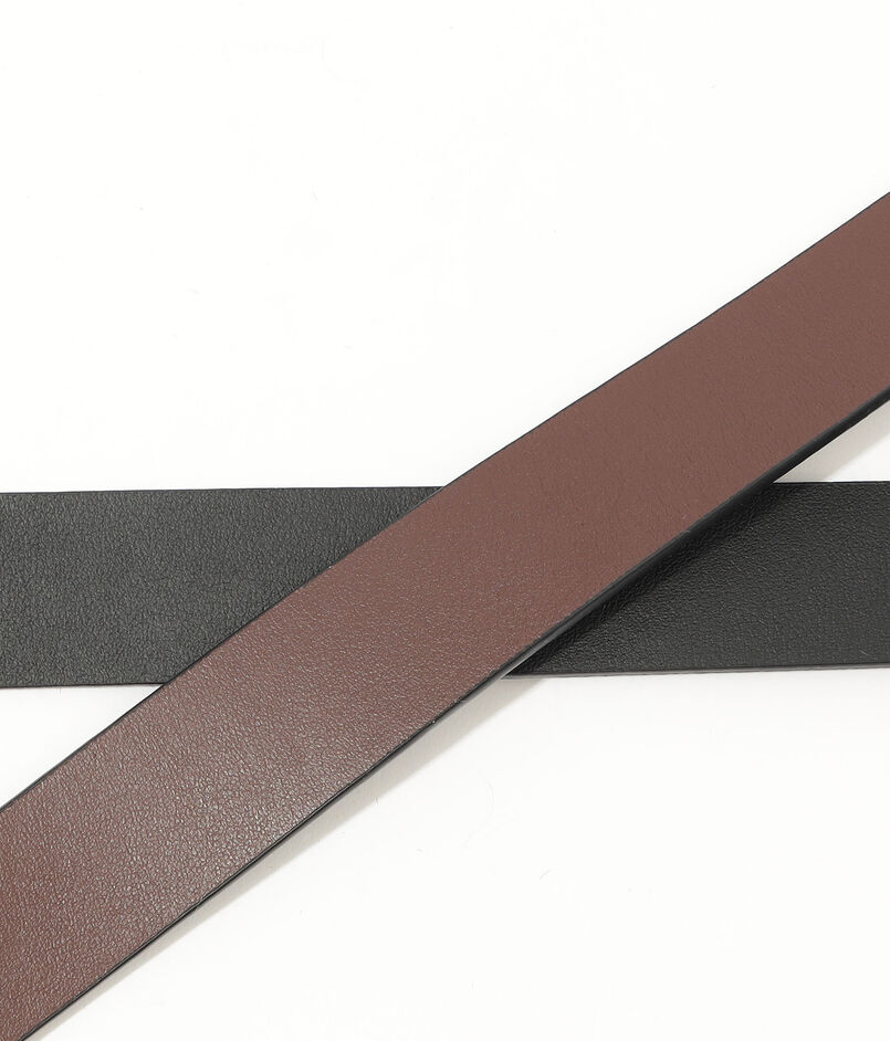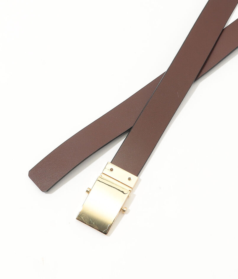 ゴールドのバックルを回転させ、ブラウンとブラックの異なるカラーを楽しめる2WAYタイプのベルト。