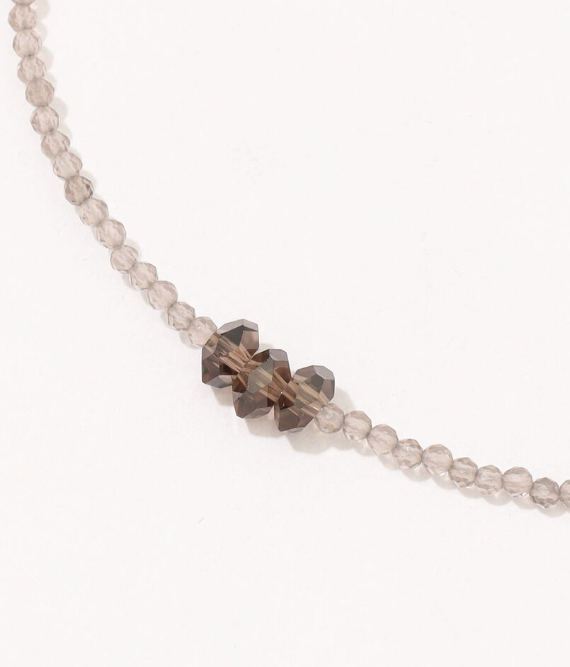 トップにあしらった立体的なスモーキークォーツがメリハリを生み、デコルテに上品な色香を演出します。