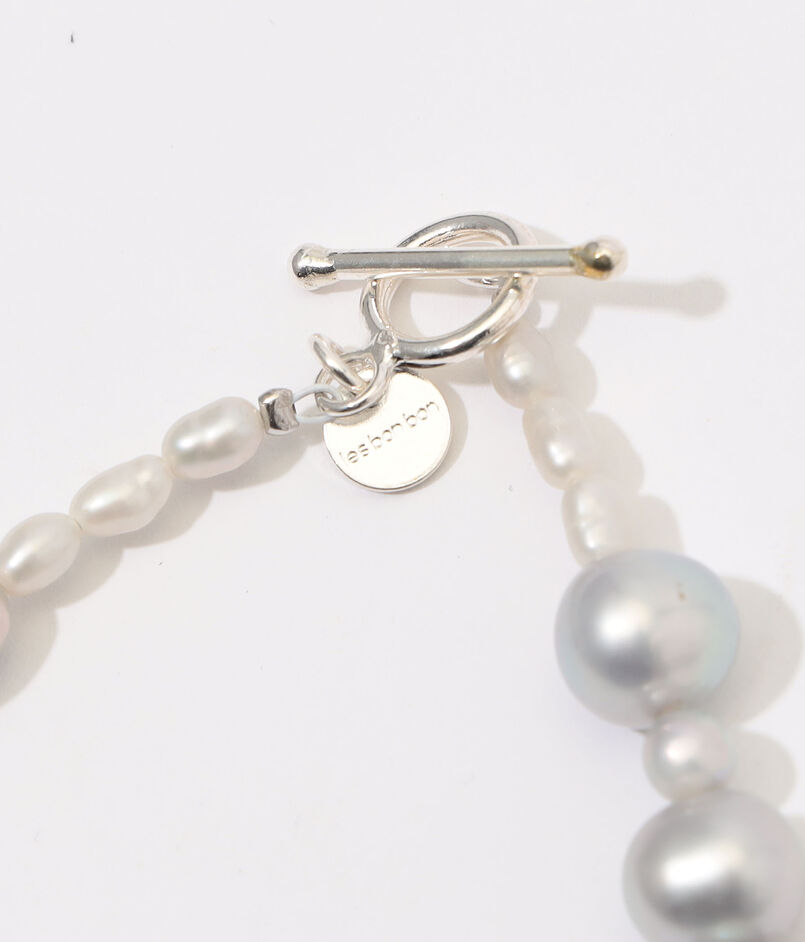 サイズや形状の異なる淡水パールをランダムに配し、情緒的な一面を表現。