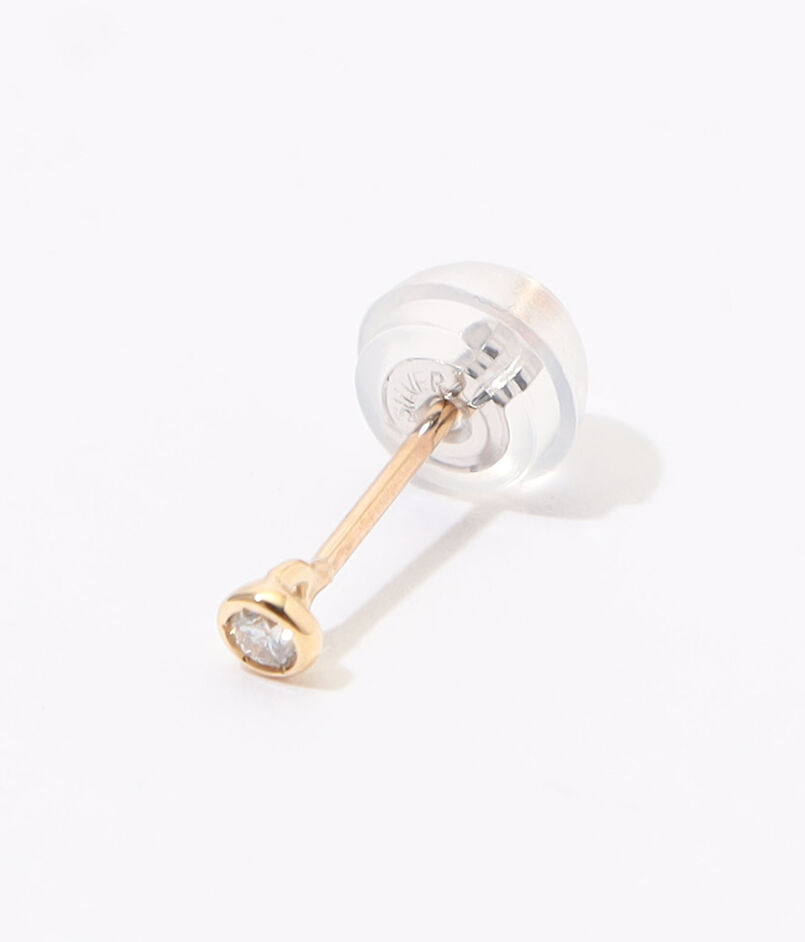 一粒ストーンのさりげないボリューム感と、ピュアな輝きが印象的なダイヤモンドピアス。
