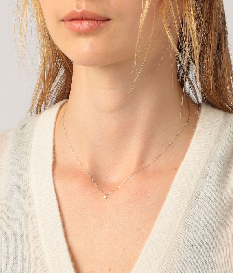 ダイヤモンドのピュアな輝きを主役にしたネックレスは、着こなしやシーンを選ばないのが魅力です。