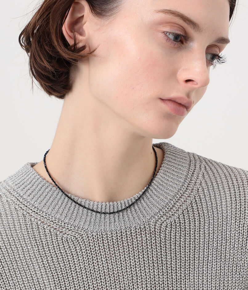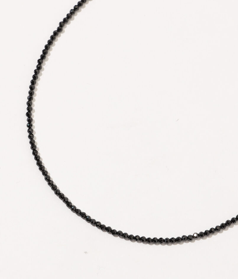 “果敢”や“破邪”の意味を持ち、古くから魔除けとしても親しまれてきたブラックスピネルのチョーカー。細かな粒子を並べることで、強さと静けさの二面性を感じられる仕上がりにしています。