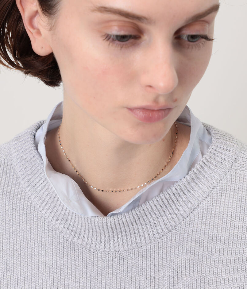 首元に寄り添うチョーカーは肌によりフィットし、モード感が漂います。