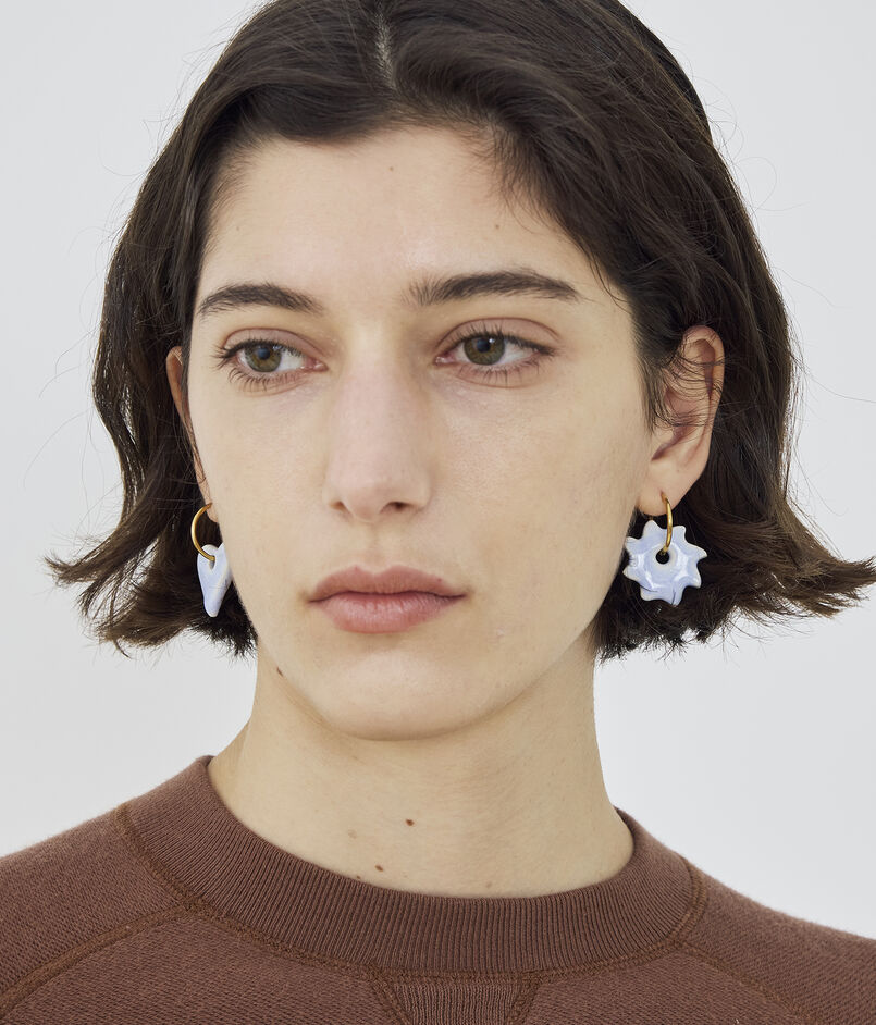 陶器の艶が美しく耳元で揺れるピアス。