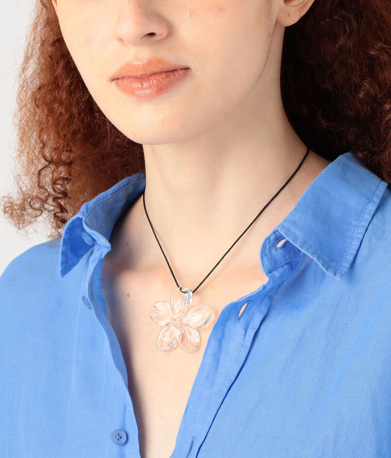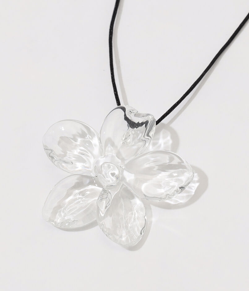 透明感あふれるガラスが爽やかな、フラワーモチーフのネックレス。