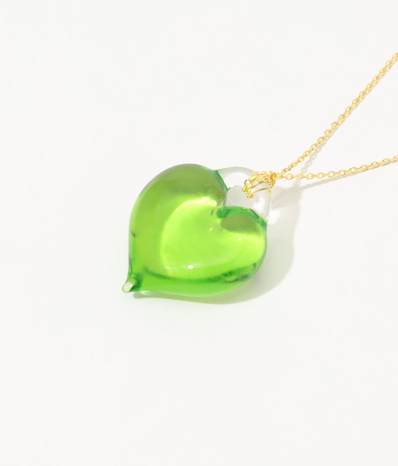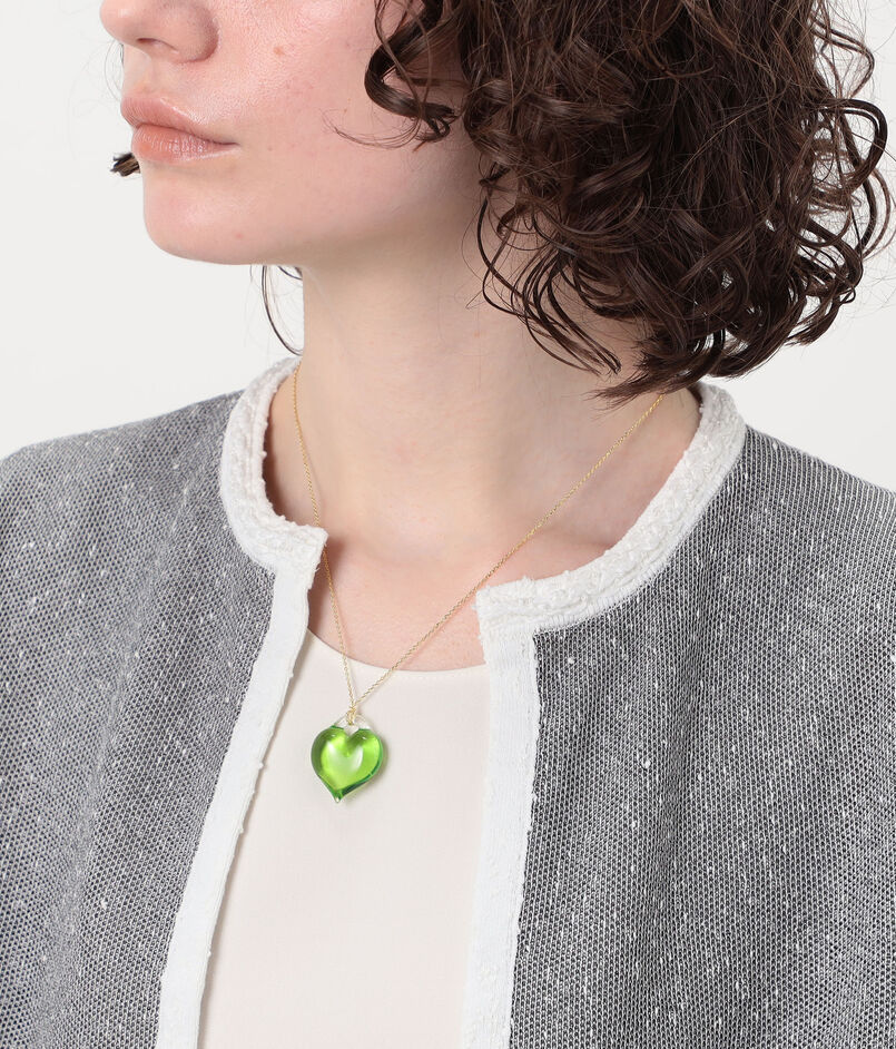ハンドメイドならではの温もりと、清涼感のあるハートモチーフが印象的なネックレス。