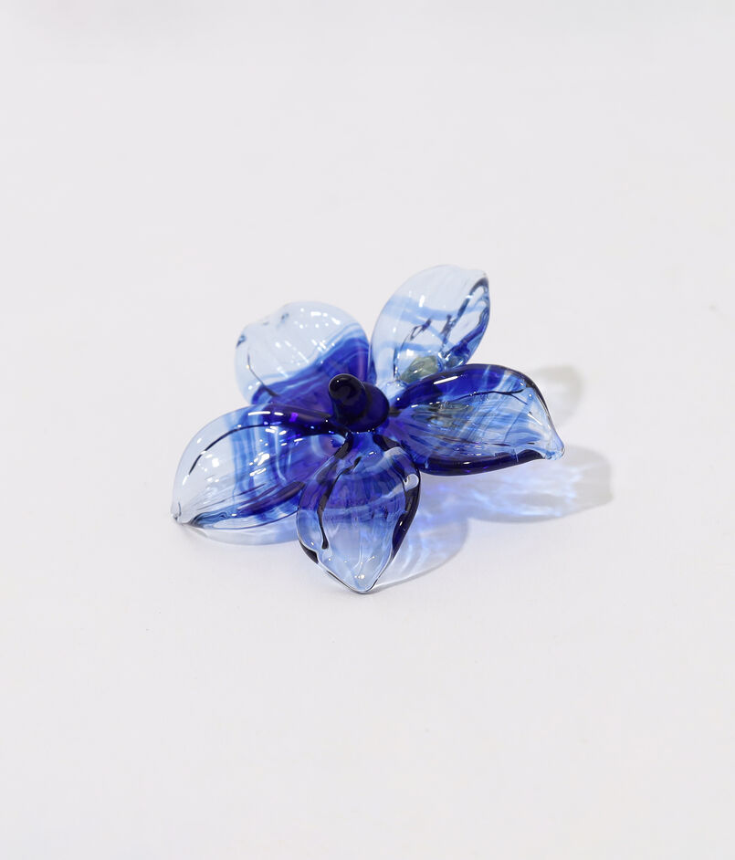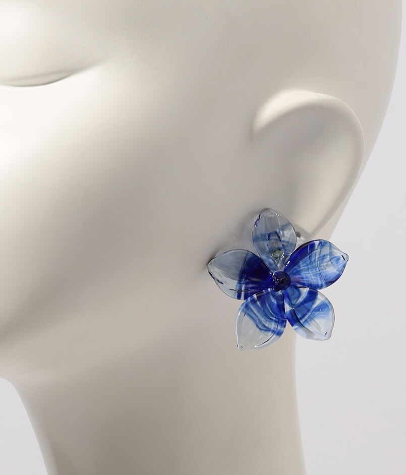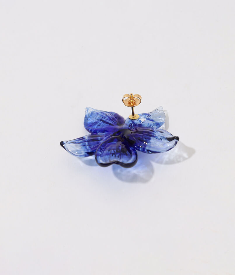 ハイビスカスをモチーフにした、透明感のあるガラス素材の片耳ピアス。