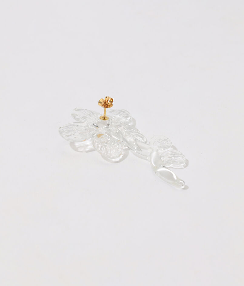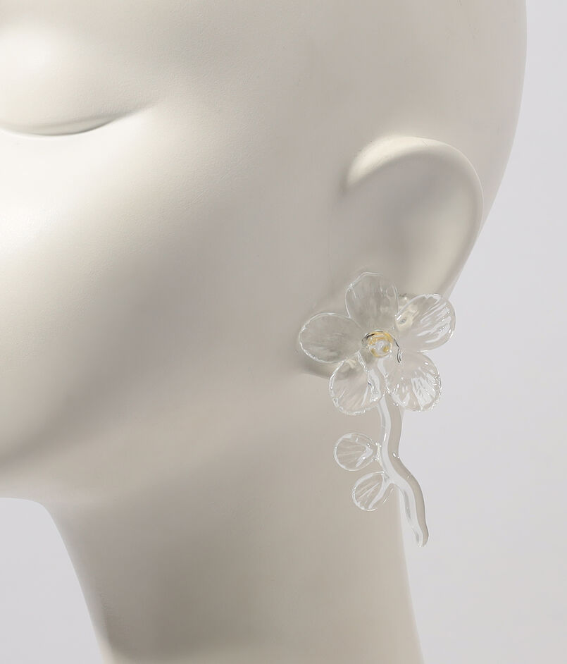 瑞々しいガラスの質感が美しい片耳用フラワーピアス。