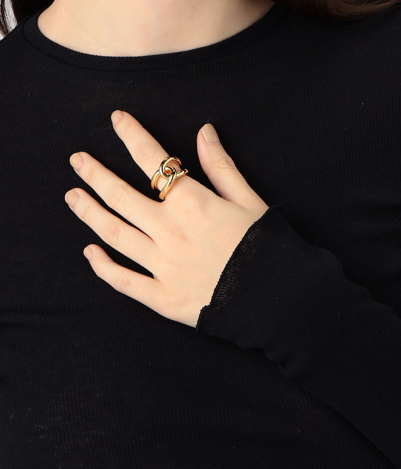 リング中央に配した愛らしいノットモチーフが、手元にさりげない表情を添えるデザイン。