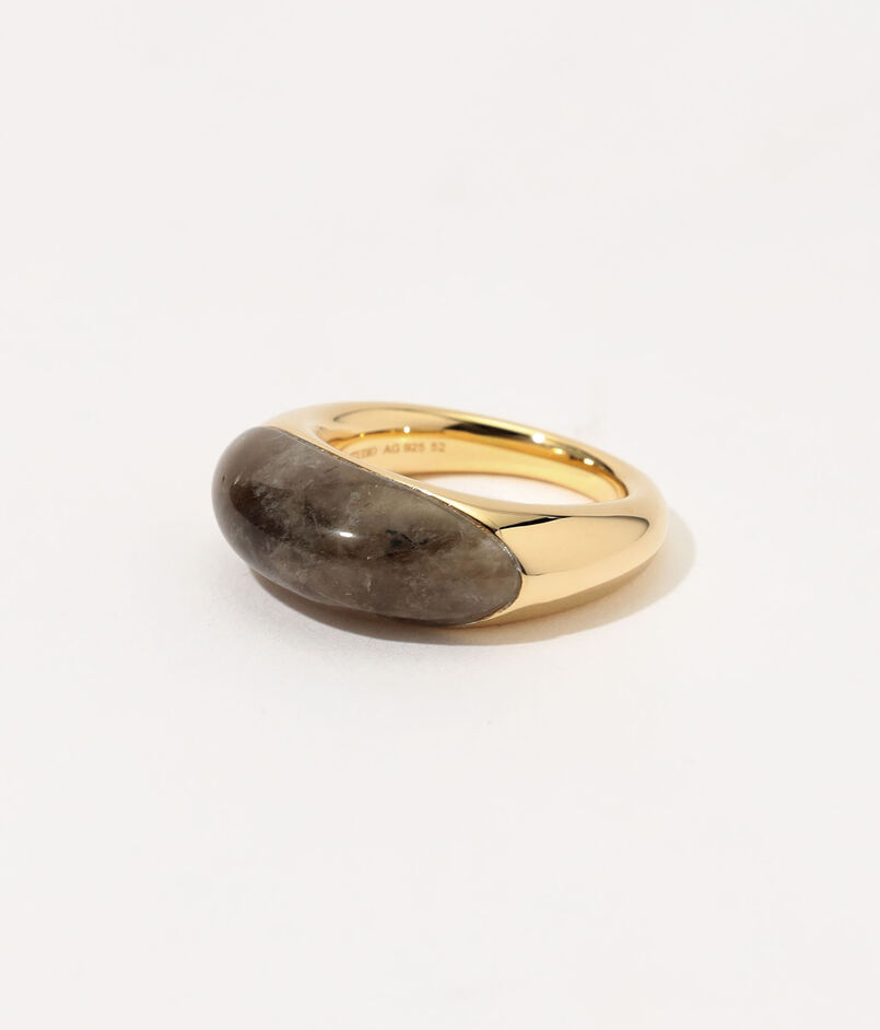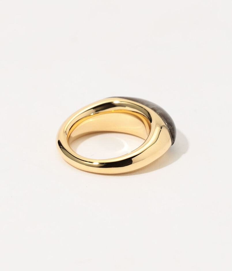 なめらかなカーブを描くスモーキークォーツをあしらい、自然なフォルムとクリーンなラインが美しく調和しています。