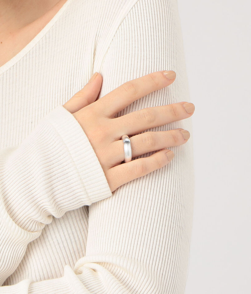 丸みのあるフォルムとシャープな表情を併せ持つ、洗練された佇まいのリング。