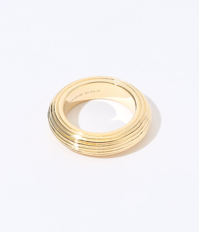 丸みのあるフォルムとシャープな表情を併せ持つ、洗練された佇まいのリング。