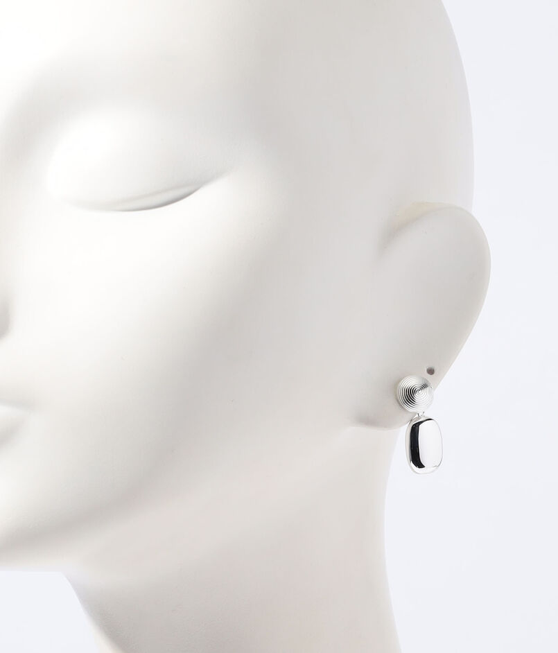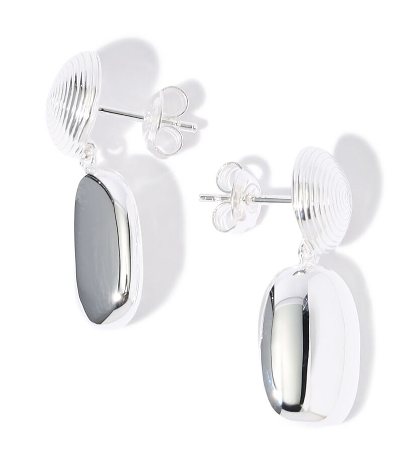 繊細なスパイラルモチーフと、存在感のあるオーバルドロップが組み合わせられたピアス。