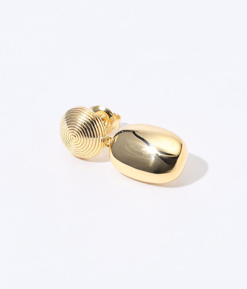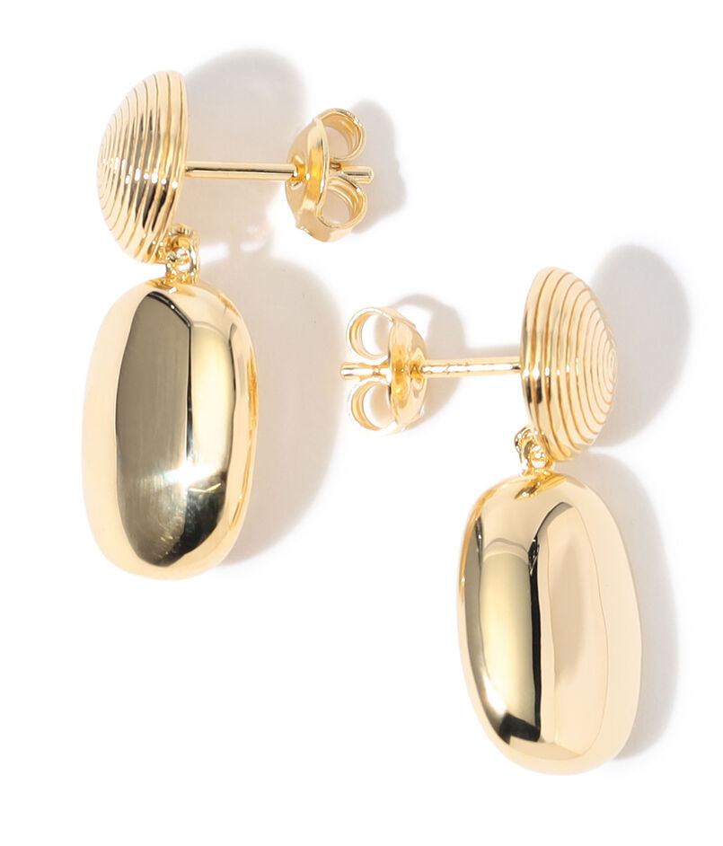 繊細なスパイラルモチーフと、存在感のあるオーバルドロップが組み合わせられたピアス。