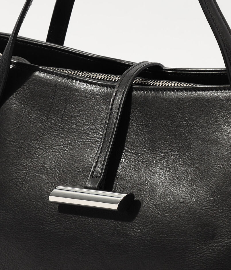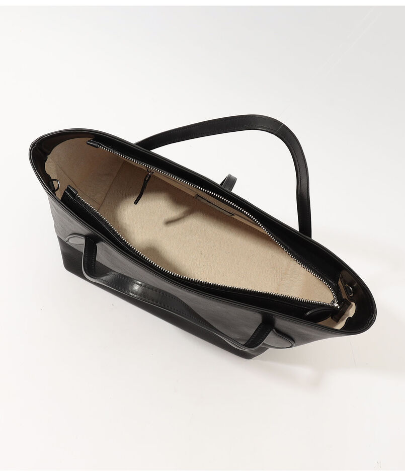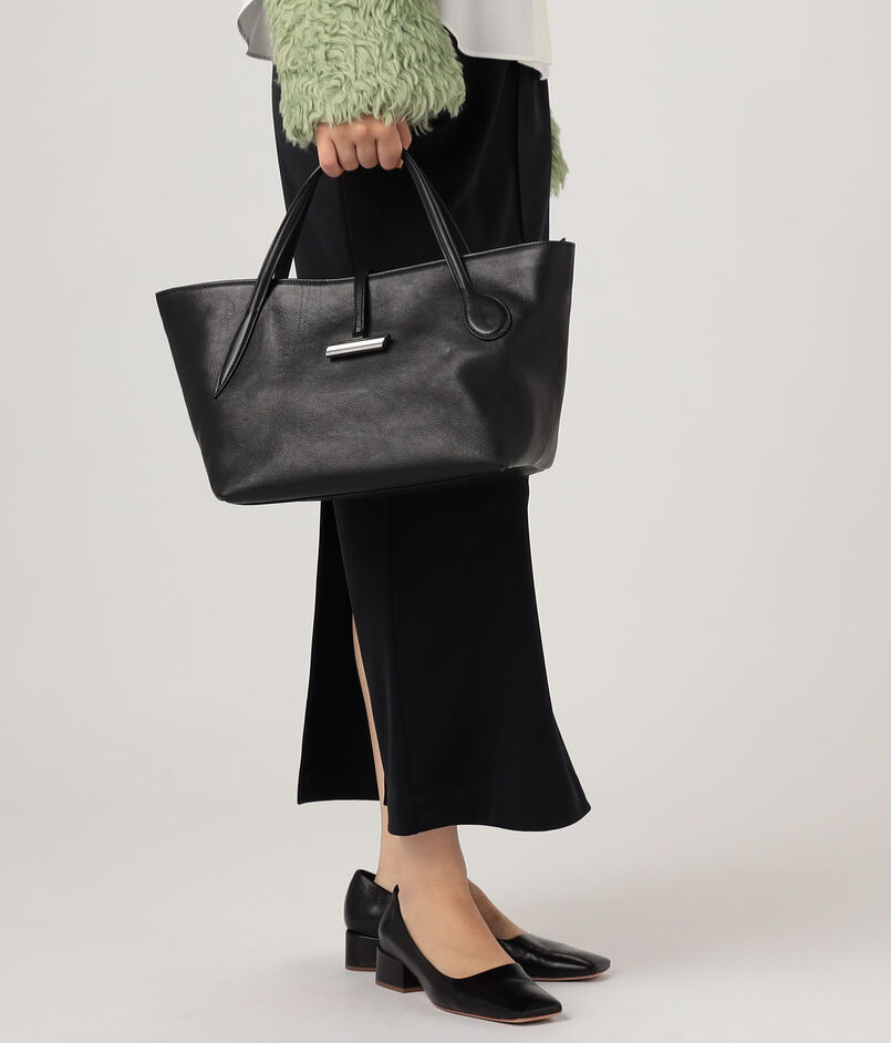 カーブしたトップのシルエットと、存在感のあるペンネ金具が特徴で、あらゆるシーンで活躍してくれるトートバッグ。