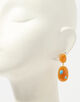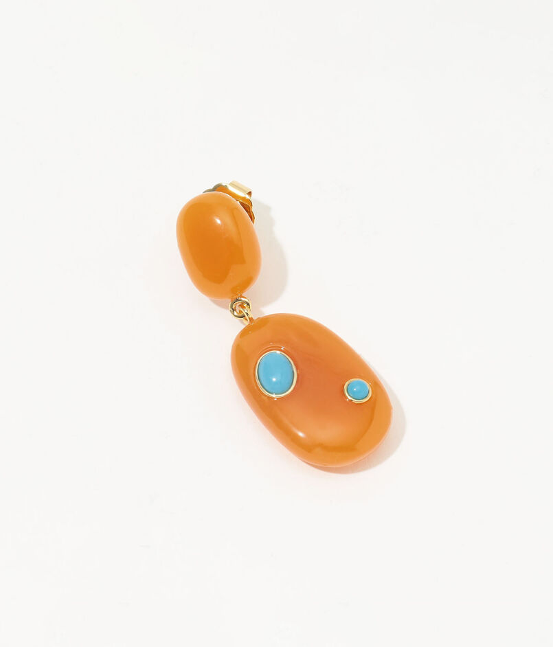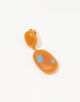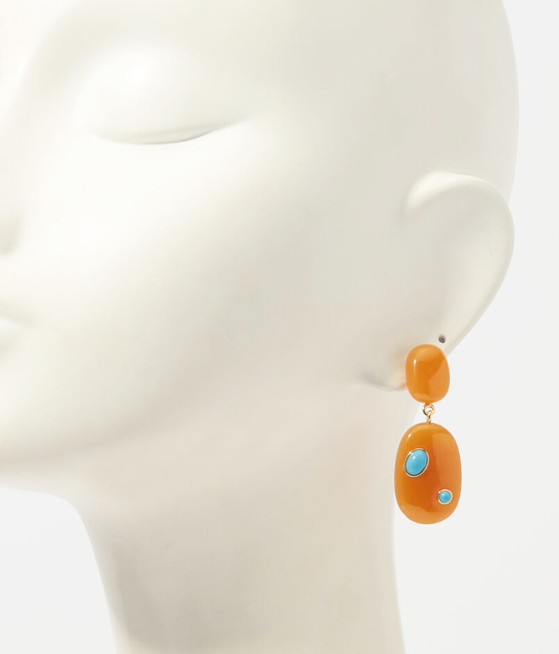 鮮烈なオレンジレジンにターコイズカラーのストーンを散りばめた、存在感あふれるリンクデザインが目を引きます。
