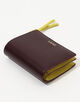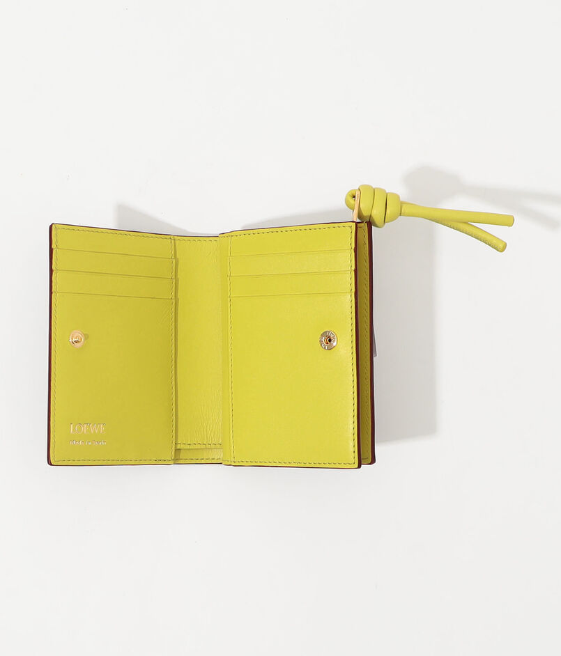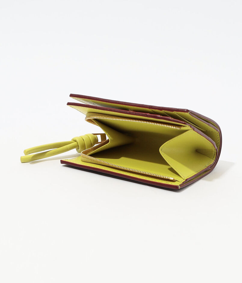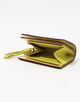 引き手と同じコントラストカラーの内側は、コインコンパートメントのほかに、スリップポケットやカードスロットが配され、コンパクトながらも十分な容量を備えています。