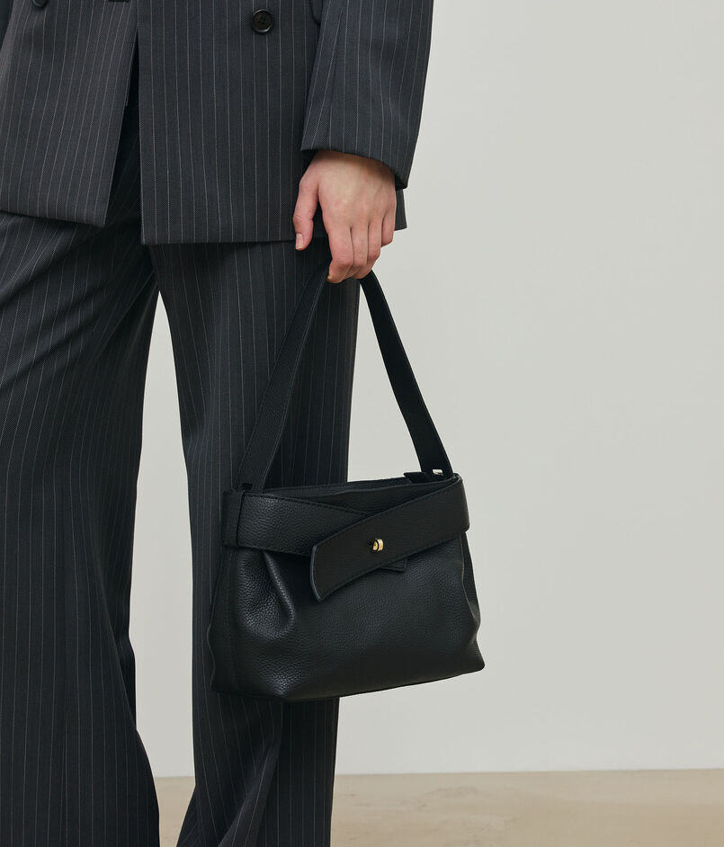 洗練されたシルエットがモードな印象のショルダーバッグ。