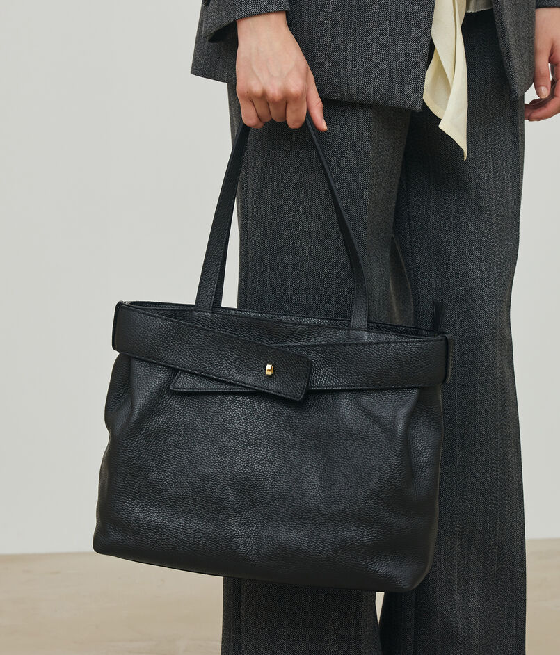 洗練されたシルエットがモードな印象のショルダーバッグ。