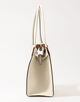 美しい縦型のフォルムが、スタイリッシュな印象のハンドバッグ。