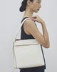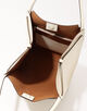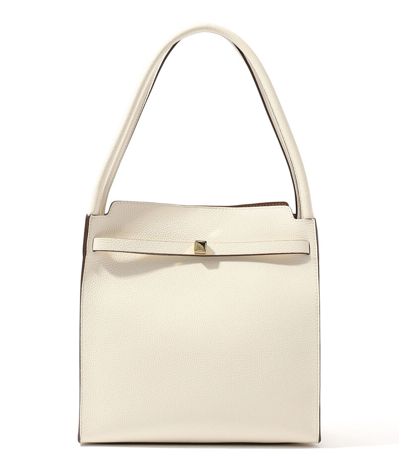 美しい縦型のフォルムが、スタイリッシュな印象のハンドバッグ。