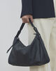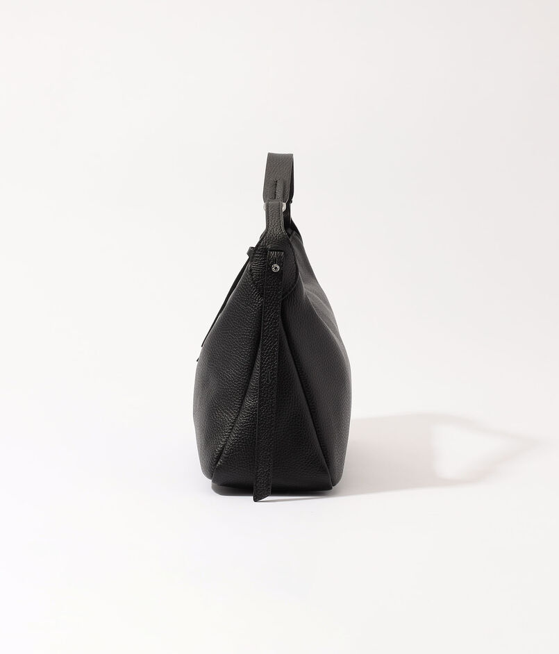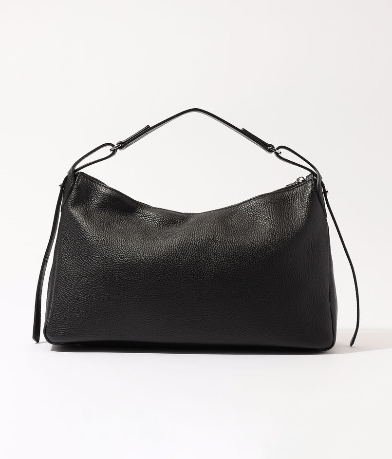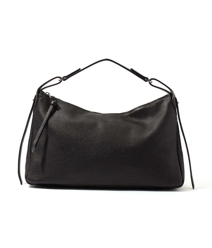 シンプルな横長のシルエットがモードな印象のショルダーバッグ。