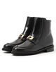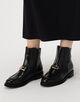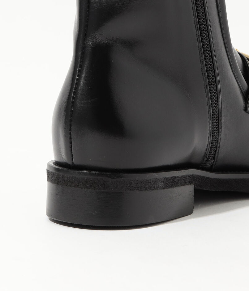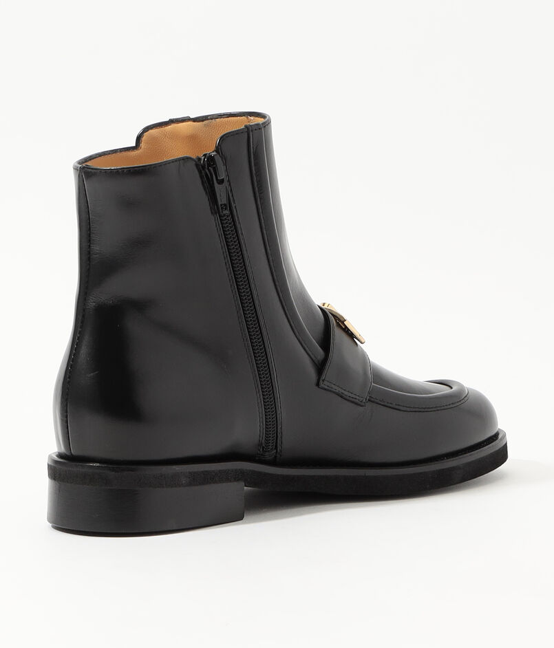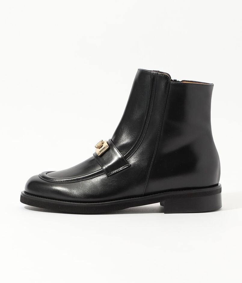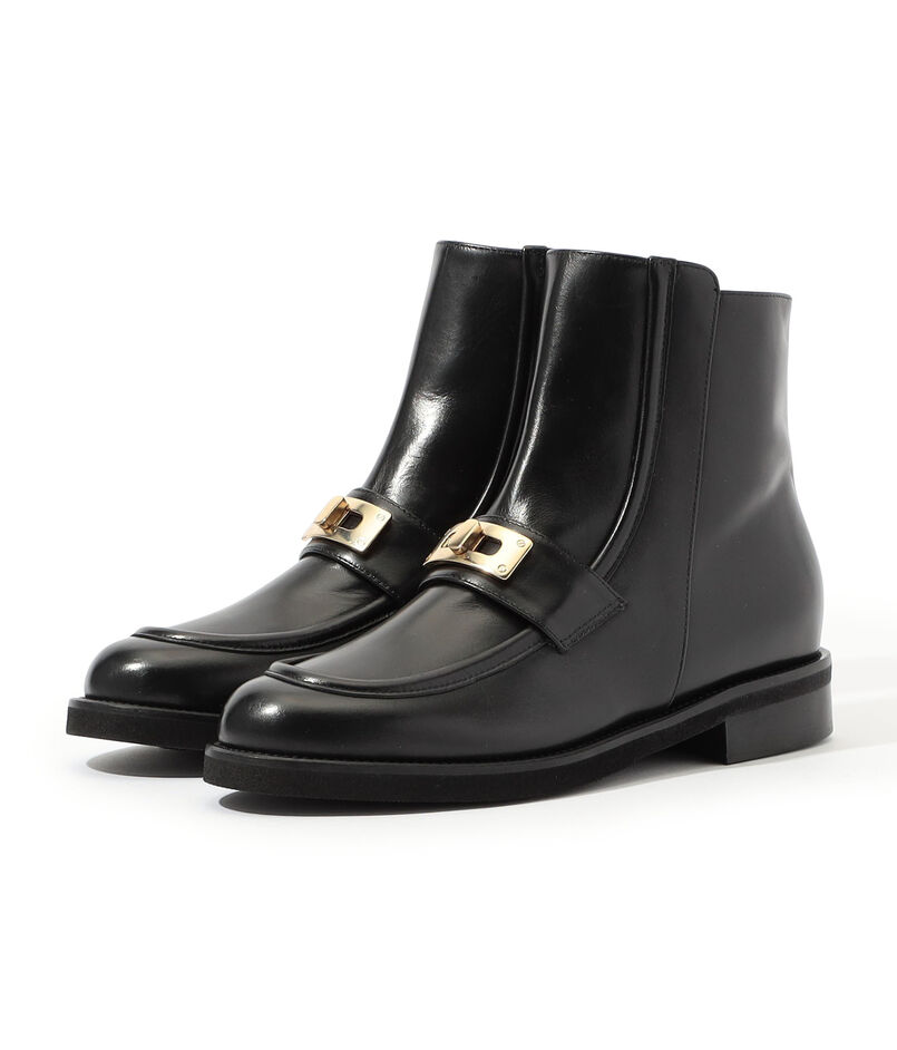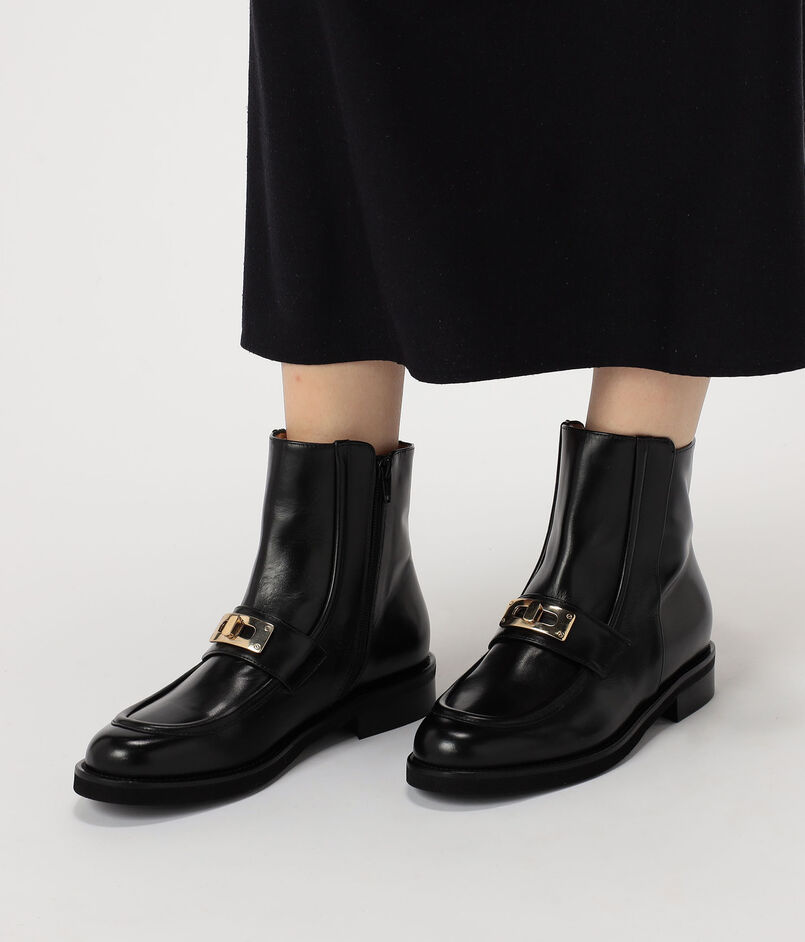 スクエアメタルのさりげないアクセントが足元に華やぎを添えるショートブーツ。