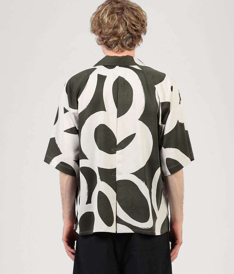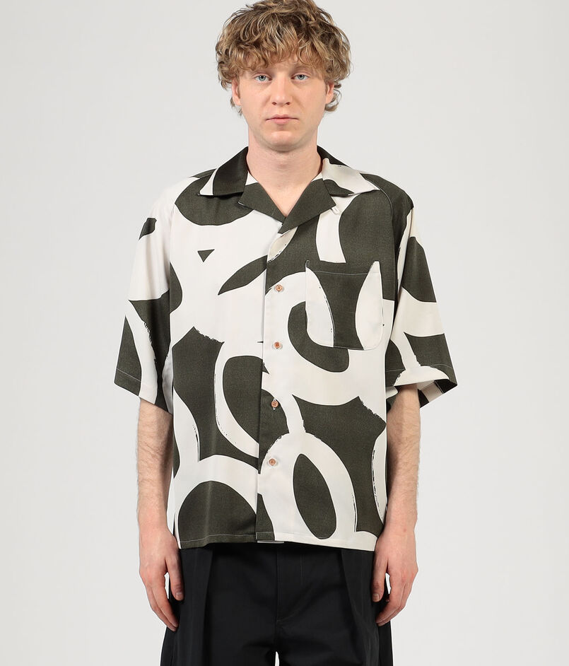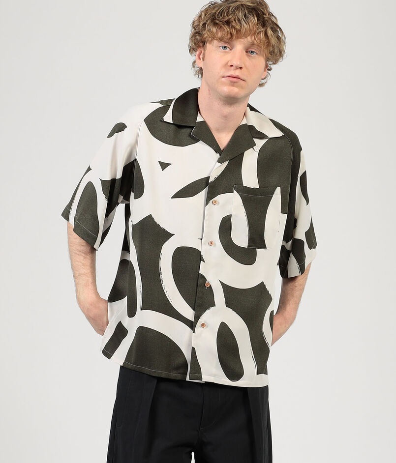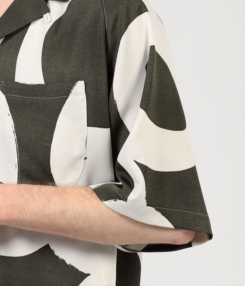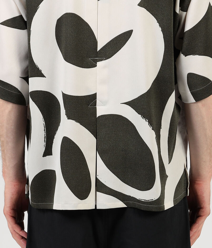 フランスのデッドストックのプリント生地を使用したオープンカラーのハーフスリーブシャツ。