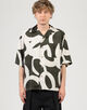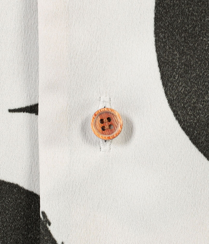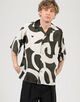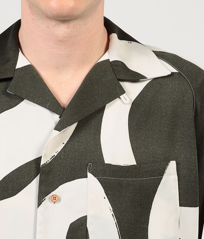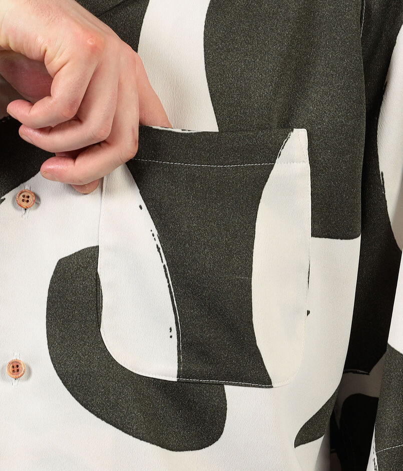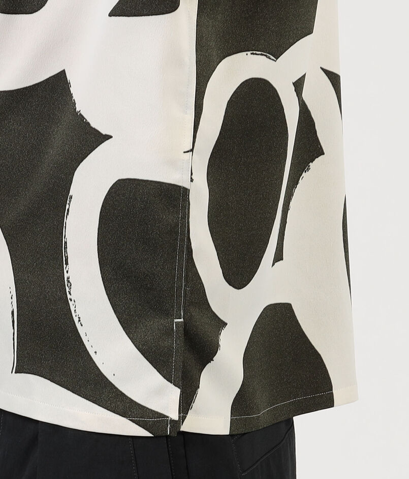 フランスのデッドストックのプリント生地を使用したオープンカラーのハーフスリーブシャツ。
