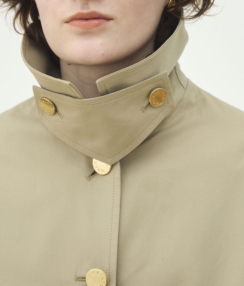 トレンチコートのオーセンティックな要素はそのままに、今季らしい軽やかさと女性らしいシルエットのバランスを追求。