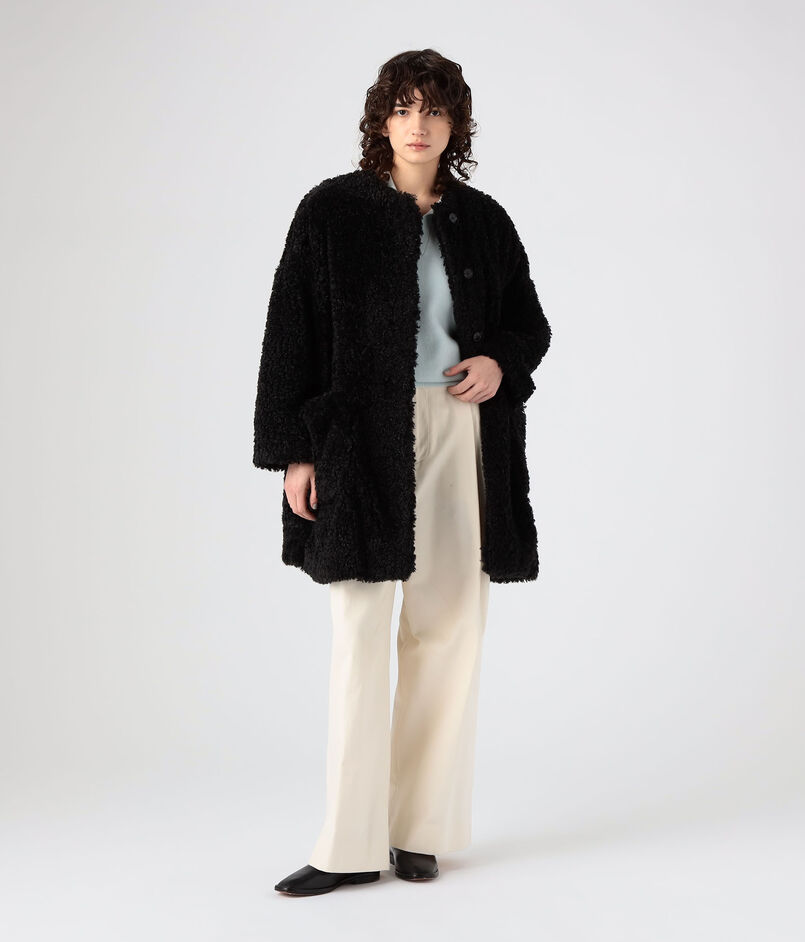 今シーズン、より洗練されたフォルムに進化した定番コート『NEW HUMBIE NO COLLAR』にエコファーコートが登場。