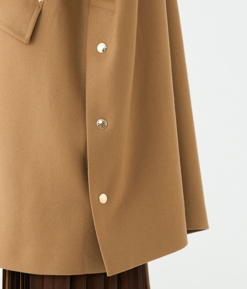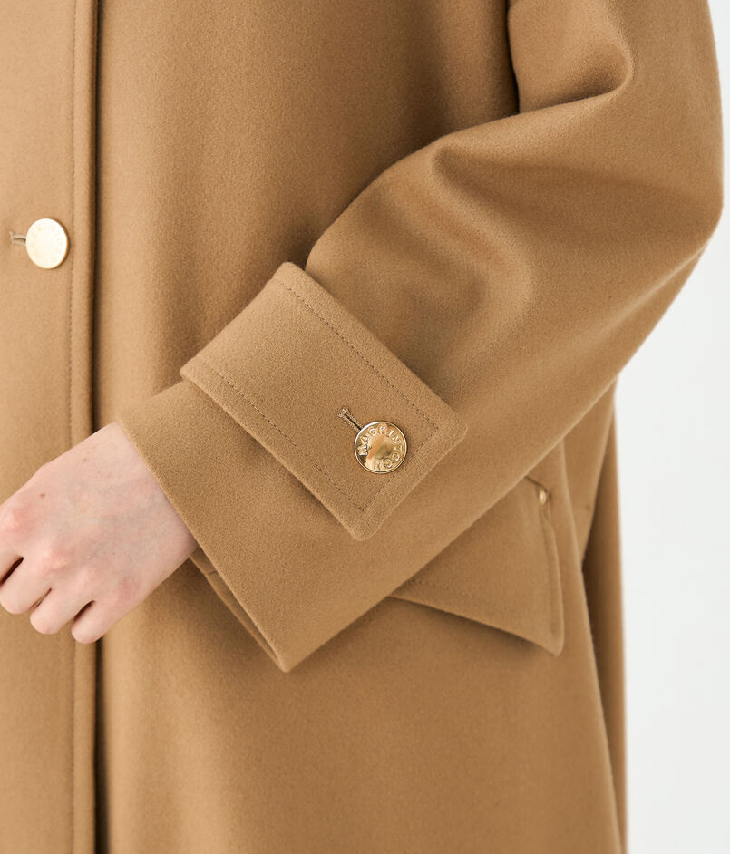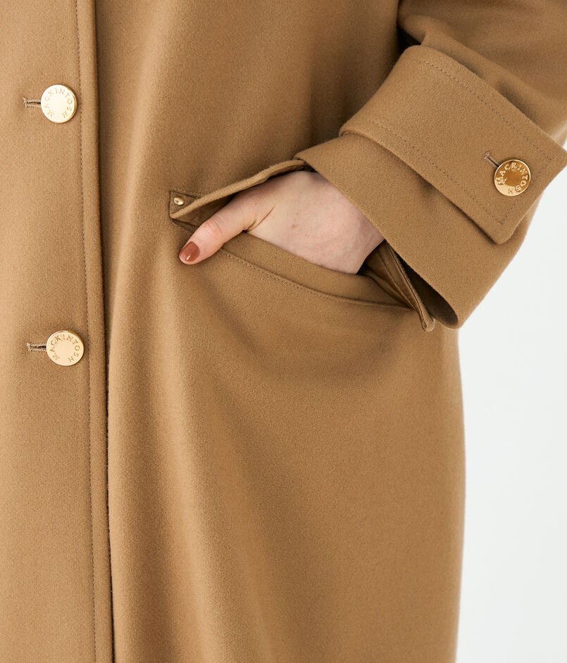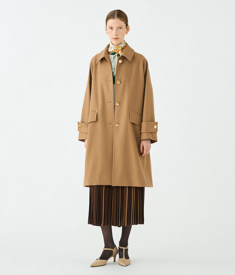 〈MACKINTOSH〉の『HUMBIE LONG』をベースに、サイドベント仕様に変更し、ハイグロス仕上げのメタルドットボタンを加えた〈TOMORROWLAND〉別注モデル。