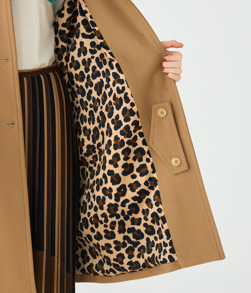 着丈は短くアレンジし、裏地にはアクセントとなるレオパード柄を採用しました。