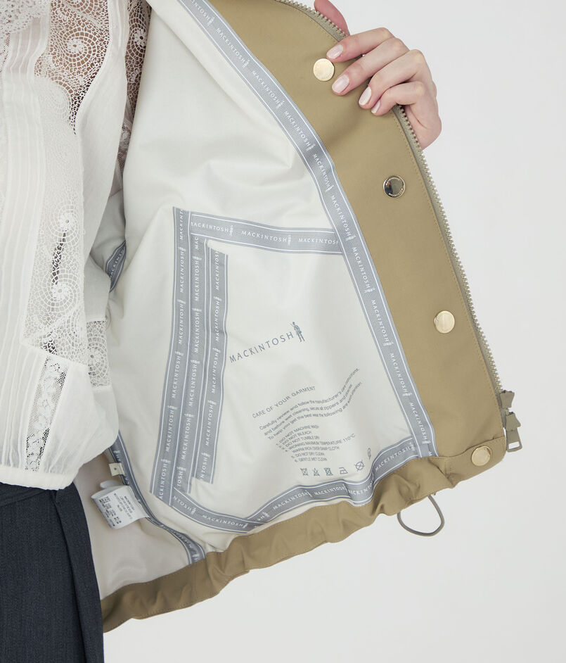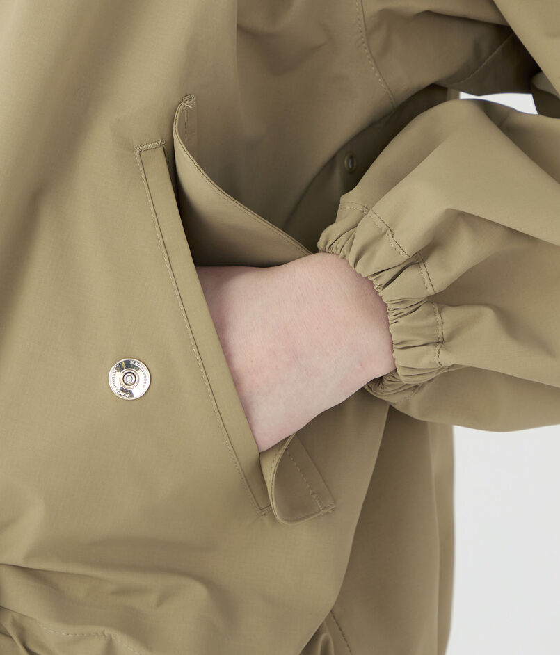裾のドローストリングによりシルエットのアレンジが可能で、スタイリングに合わせた着こなしを楽しめるのも魅力。表地には透湿防水素材RAINTECを使用し、機能性にも配慮しました。