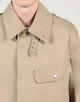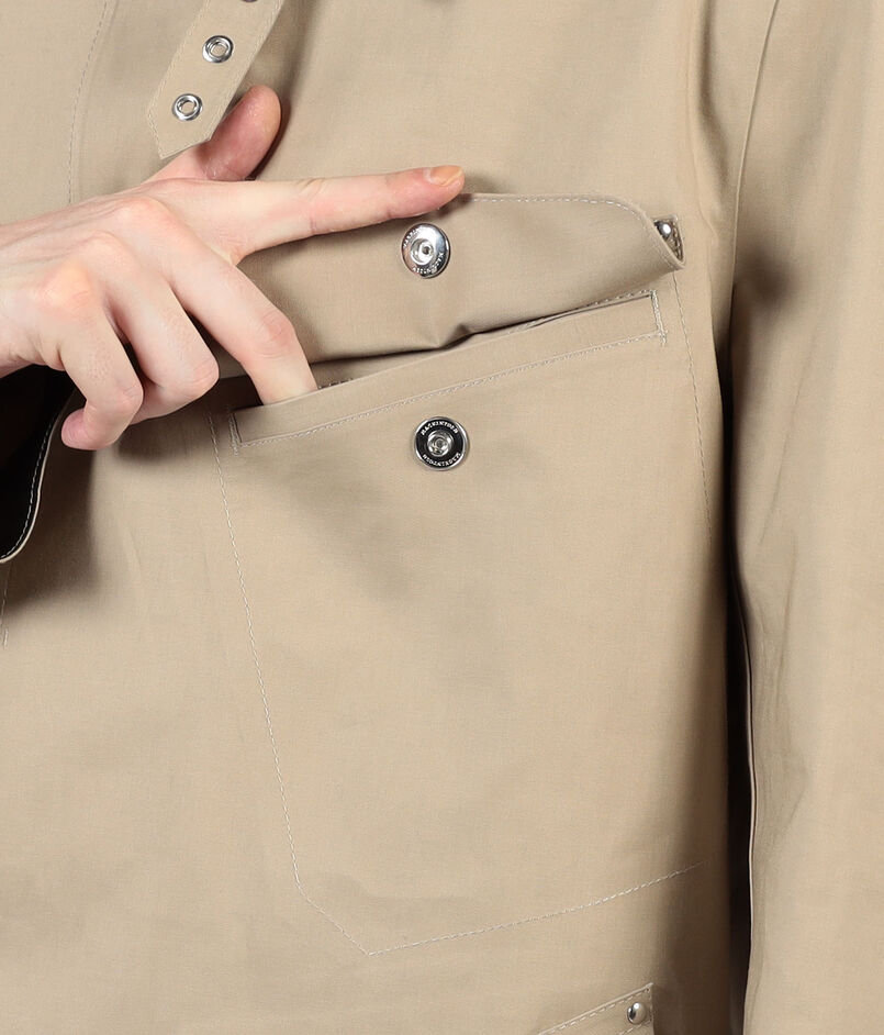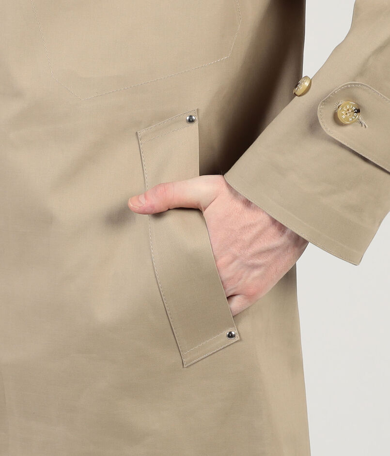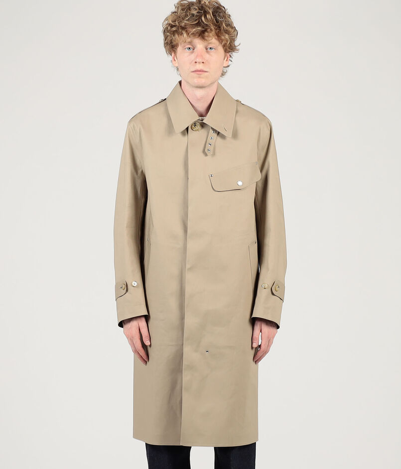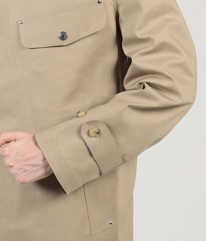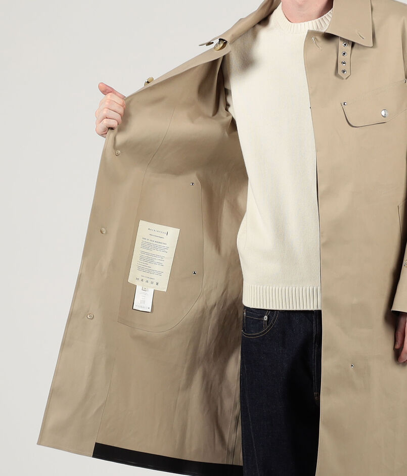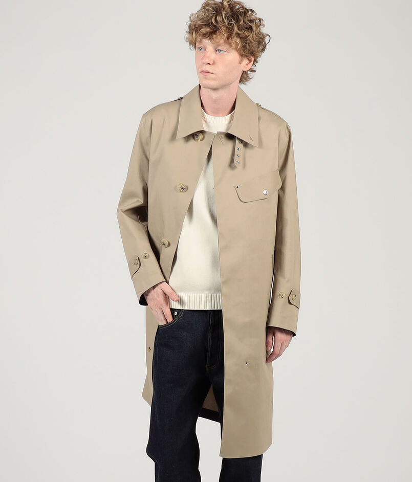 1940年代のミリタリーコートから着想を得た、ブランドの伝統と現代性が融合したモデル『GILSTON』。ゴム引きのボンディングコットンや手作業によるシームテープなど、19世紀から続く職人技が光ります。隠しボタンや胸のフラップポケットが特徴。正統派な佇まいながら、軽快な着心地と現代的なシルエットで、ビジネスからカジュアルまで幅広いシーンに対応可能です。