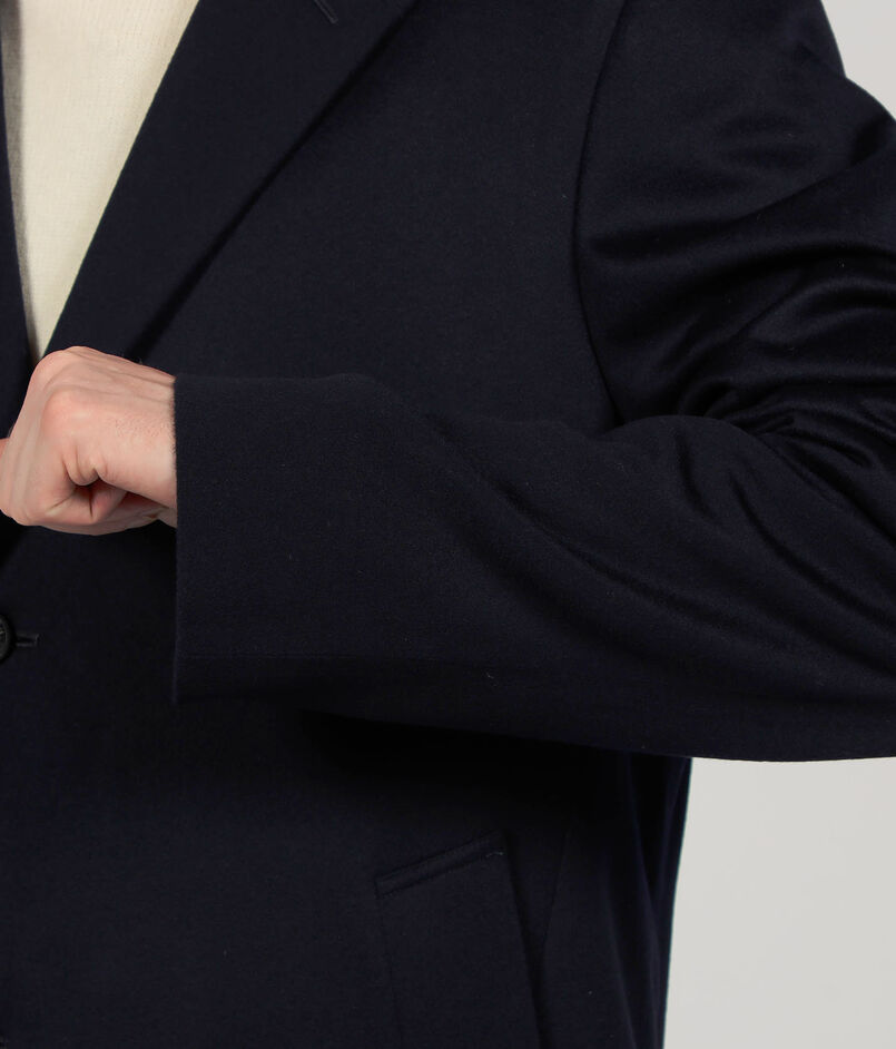 素材には、撥水・透湿・防風の機能を持った〈Loro Piana〉社の『STORM SYSTEM(ストームシステム)』を採用し、軽さと機能性を兼ね備えた秋冬シーズンを通して長く着用して頂ける一着に仕上げています。