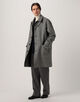 ドロップショルダーのスタンドフォールカラーコート。