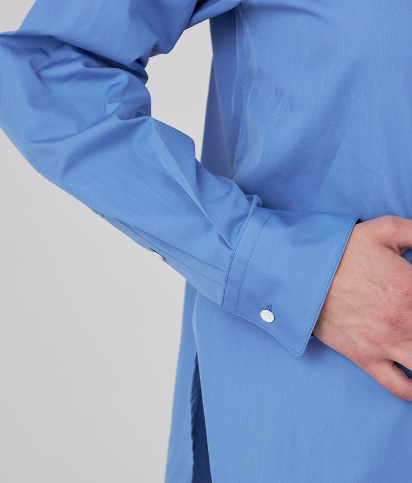 先染めにこだわるインポートシャツ地メーカーのノウハウを活かし作り上げたファインブロード素材を使用したシャツ。