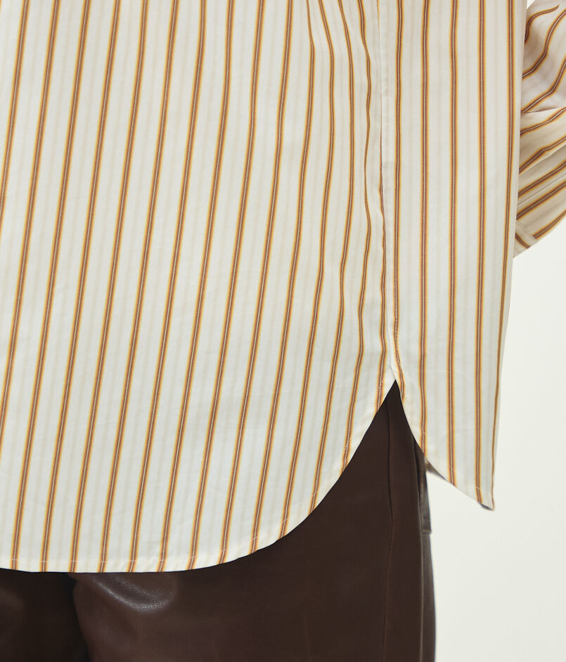 ビンテージのドレスシャツをベースに裾をラウンドパターンに仕上げた一着。