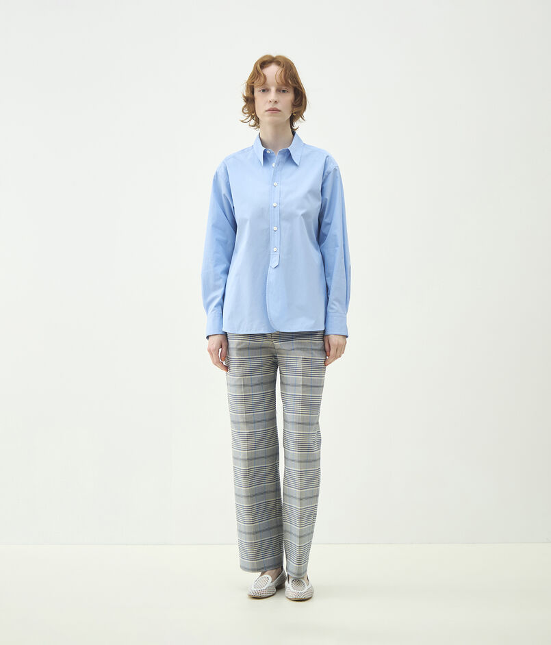 細番手のコットン糸で織り上げたタイプライター素材を使用したシャツ。
